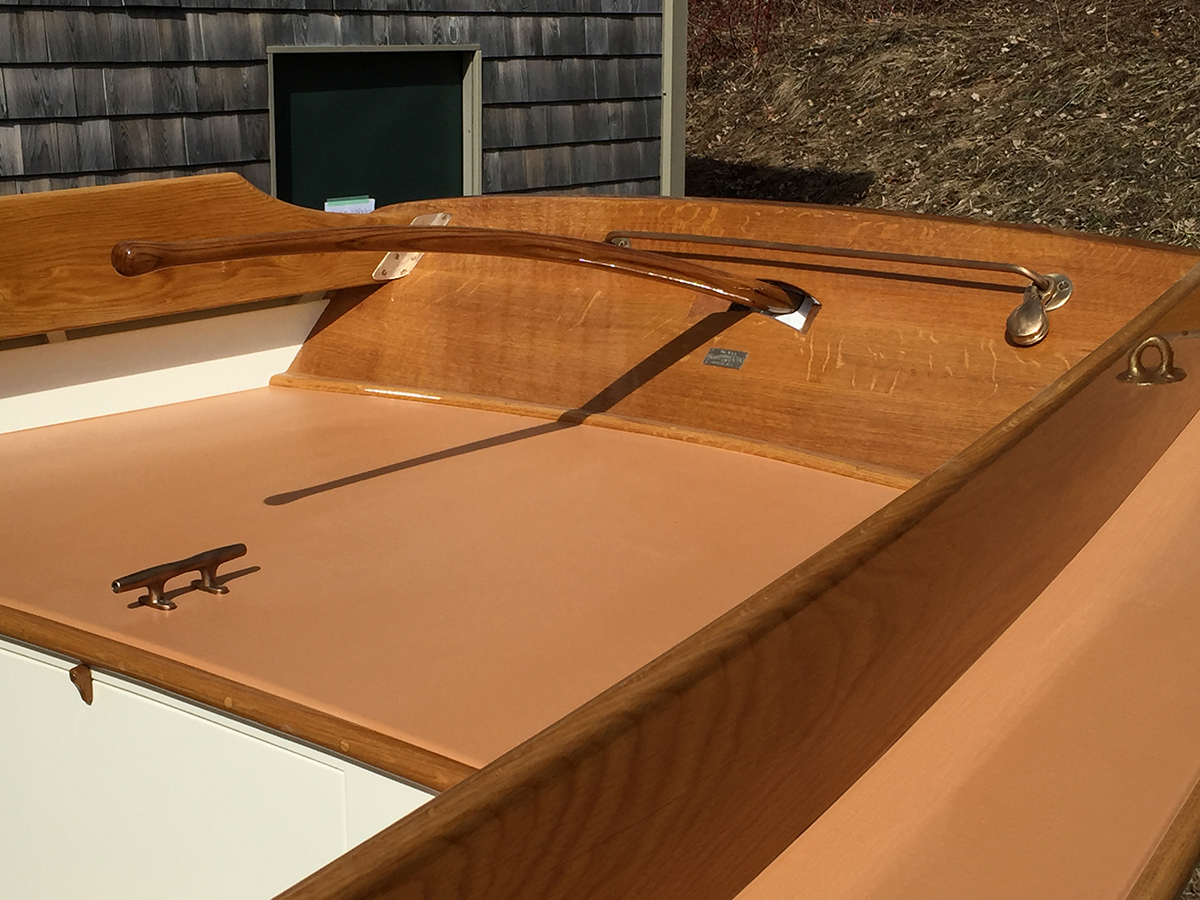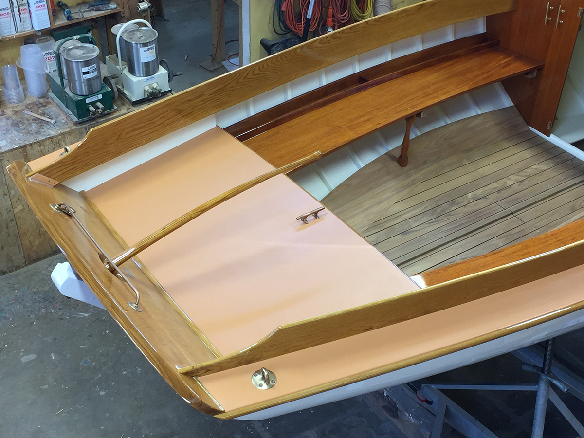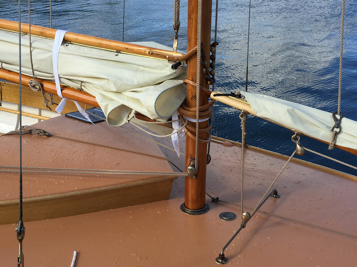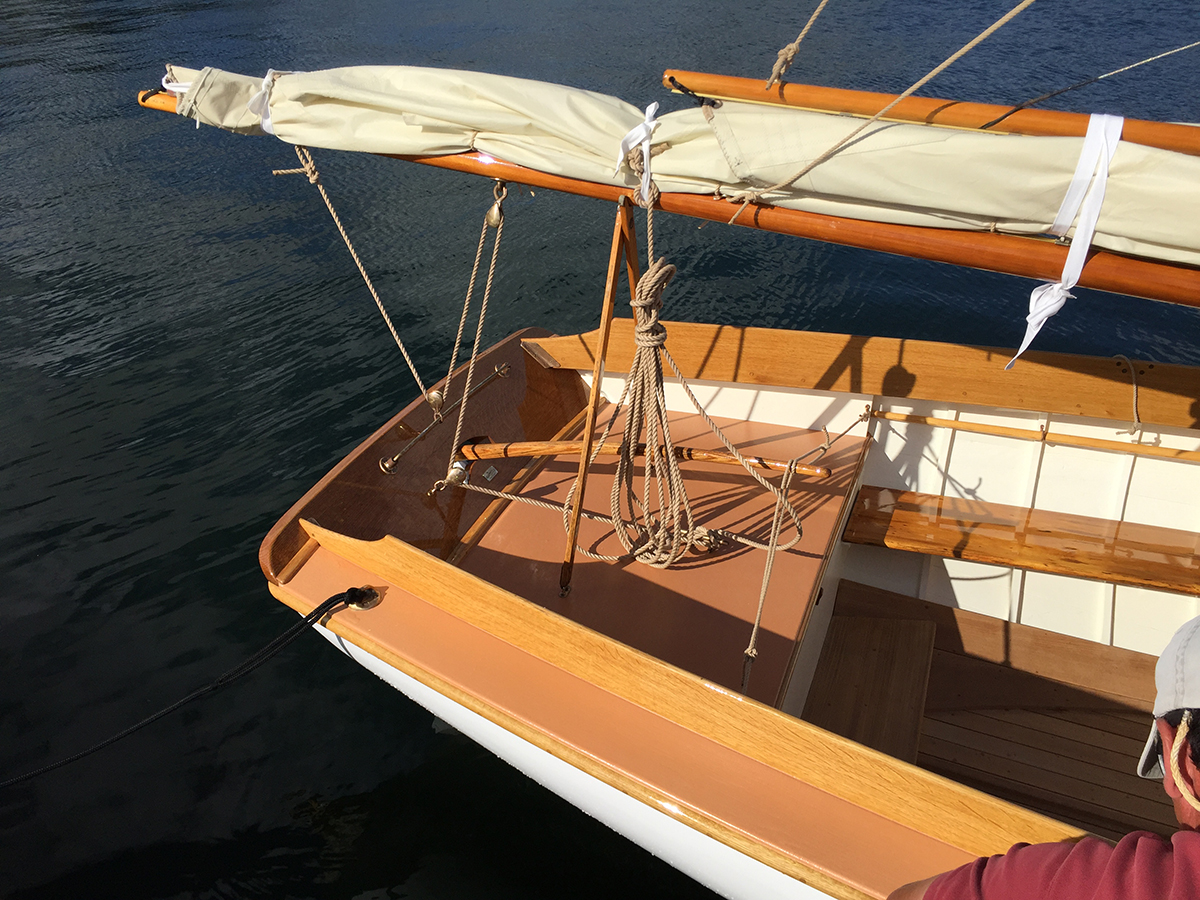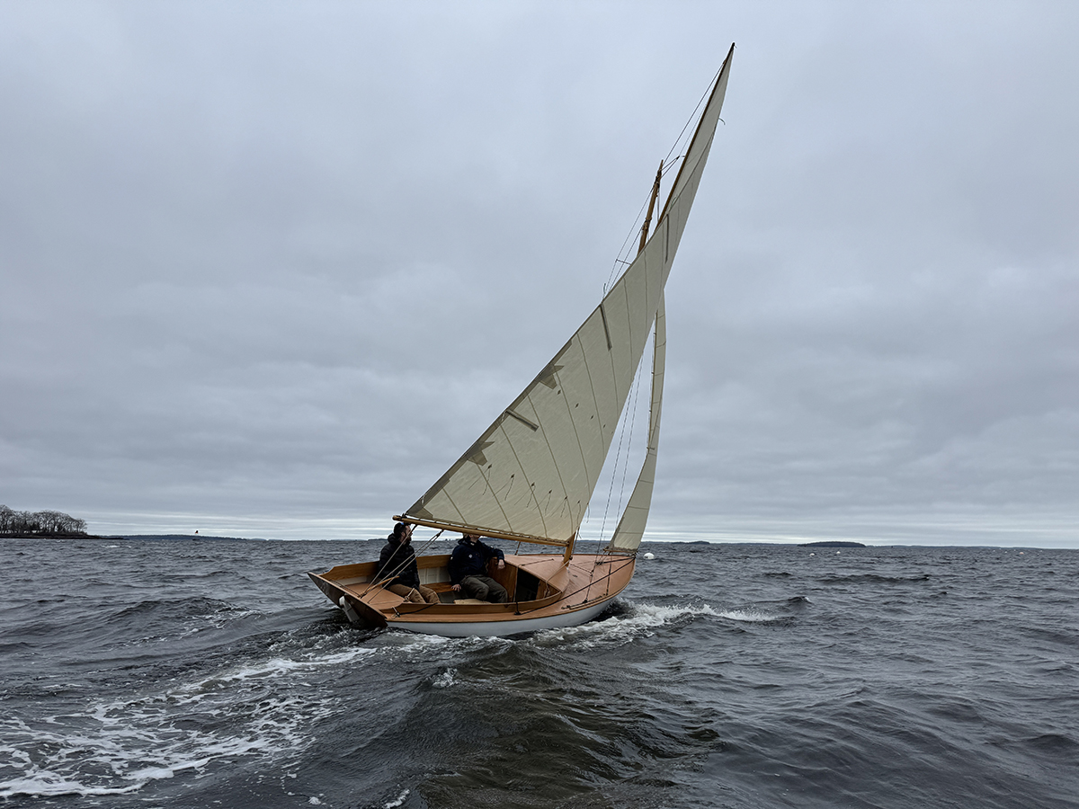 Sardine’s backbone and frames were renewed in oak; her planking was cedar; fasteners were bronze. Decking, coamings, spars, and joinery were executed in traditional species, all finished with multiple coats of varnish and paint. Artisan’s crew matched Herreshoff Manufacturing Company’s scantlings and patterns to preserve authenticity.