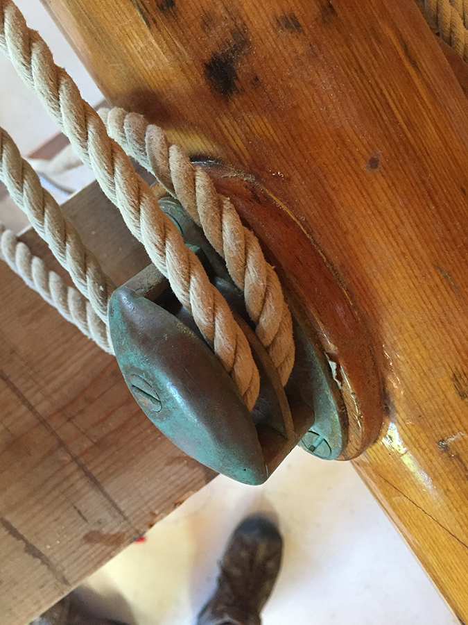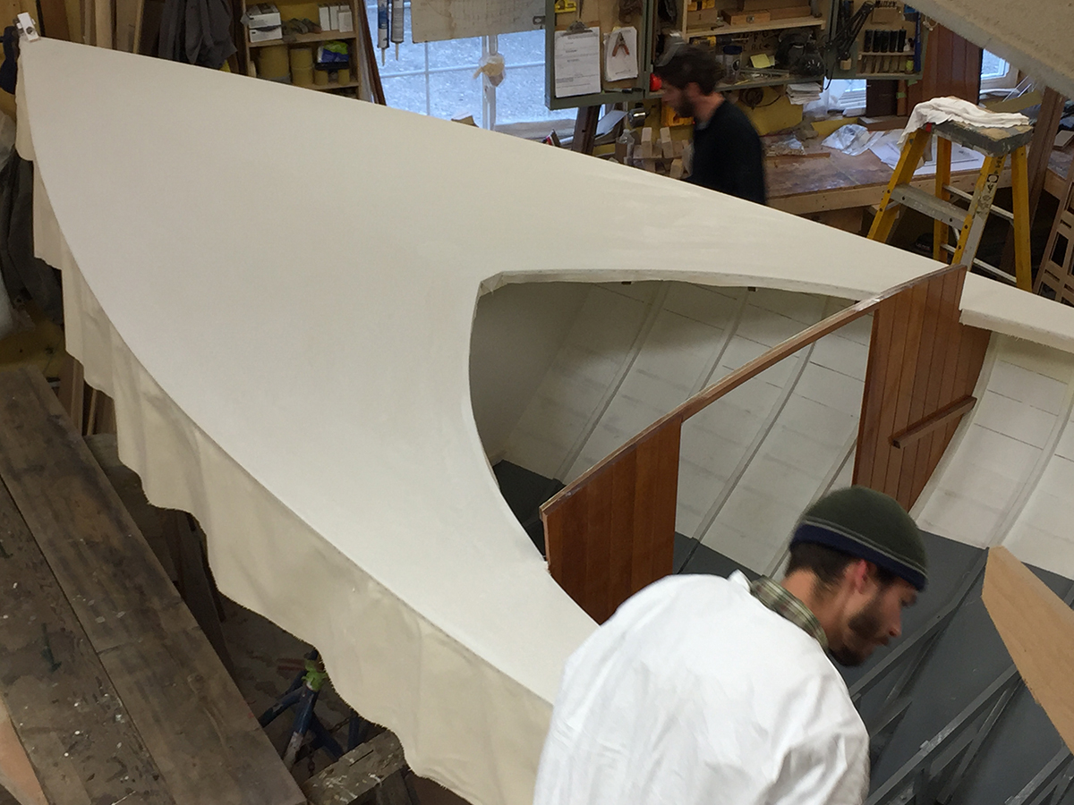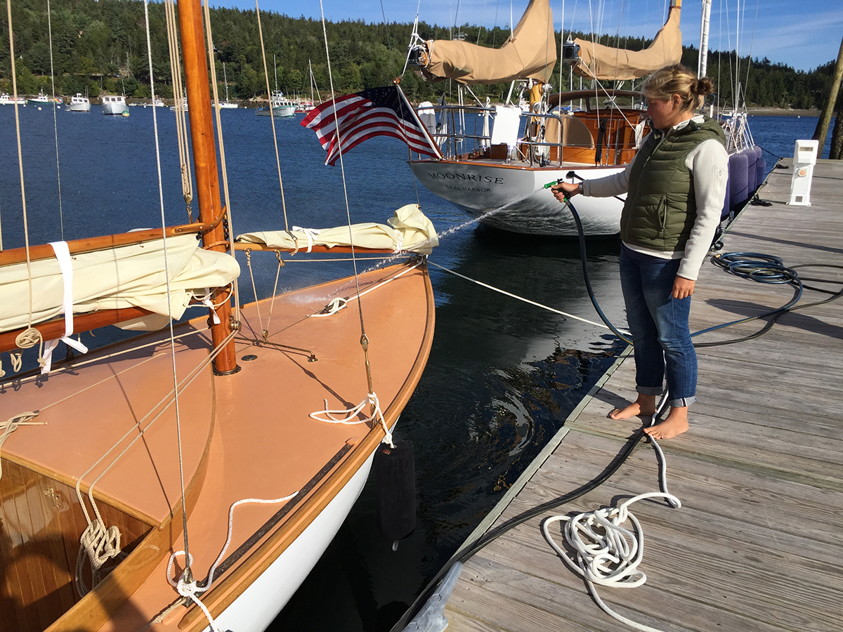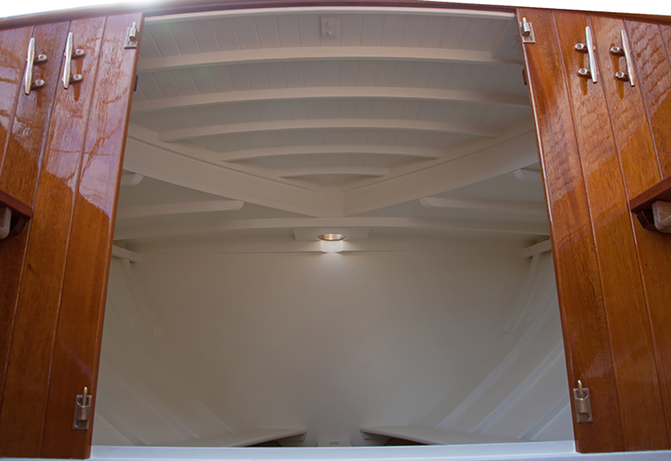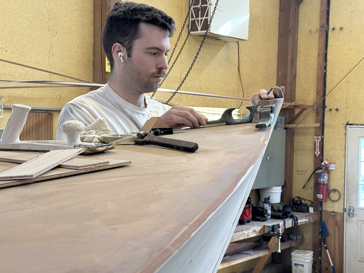 Sardine’s backbone and frames were renewed in oak; her planking was cedar; fasteners were bronze. Decking, coamings, spars, and joinery were executed in traditional species, all finished with multiple coats of varnish and paint. Artisan’s crew matched Herreshoff Manufacturing Company’s scantlings and patterns to preserve authenticity.