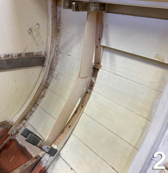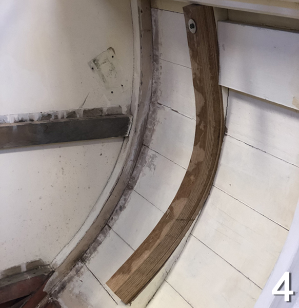 A common problem with mahogany planked hulls is their propensity to break frames, and a typical quick fix is to steam in “sister frames” The problem with sister frames is that they usually break right next to the original break, making the problem worse.