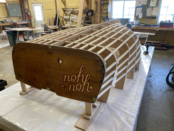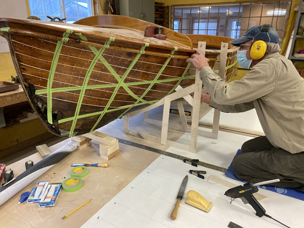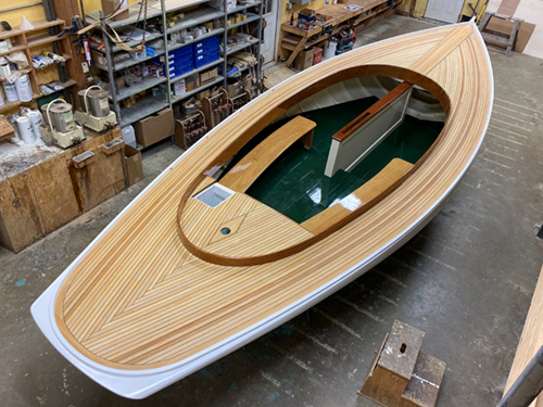 WHIRLWIND II is a new recreation of the 26′ Catboat MARIAM, originally designed and built by Gil Smith in 1898 for racing on Great South Bay, Long Island. The project has been divided into four stages over four years, and Phase 3 was completed in December. Phase 4 will include the rig, removable house top, centerboard, and rudder/tiller. WHIRLWIND II will be on display at this summer’s Wooden Boat Show at Mystic Seaport August 20-22 and launching is scheduled for summer 2022.