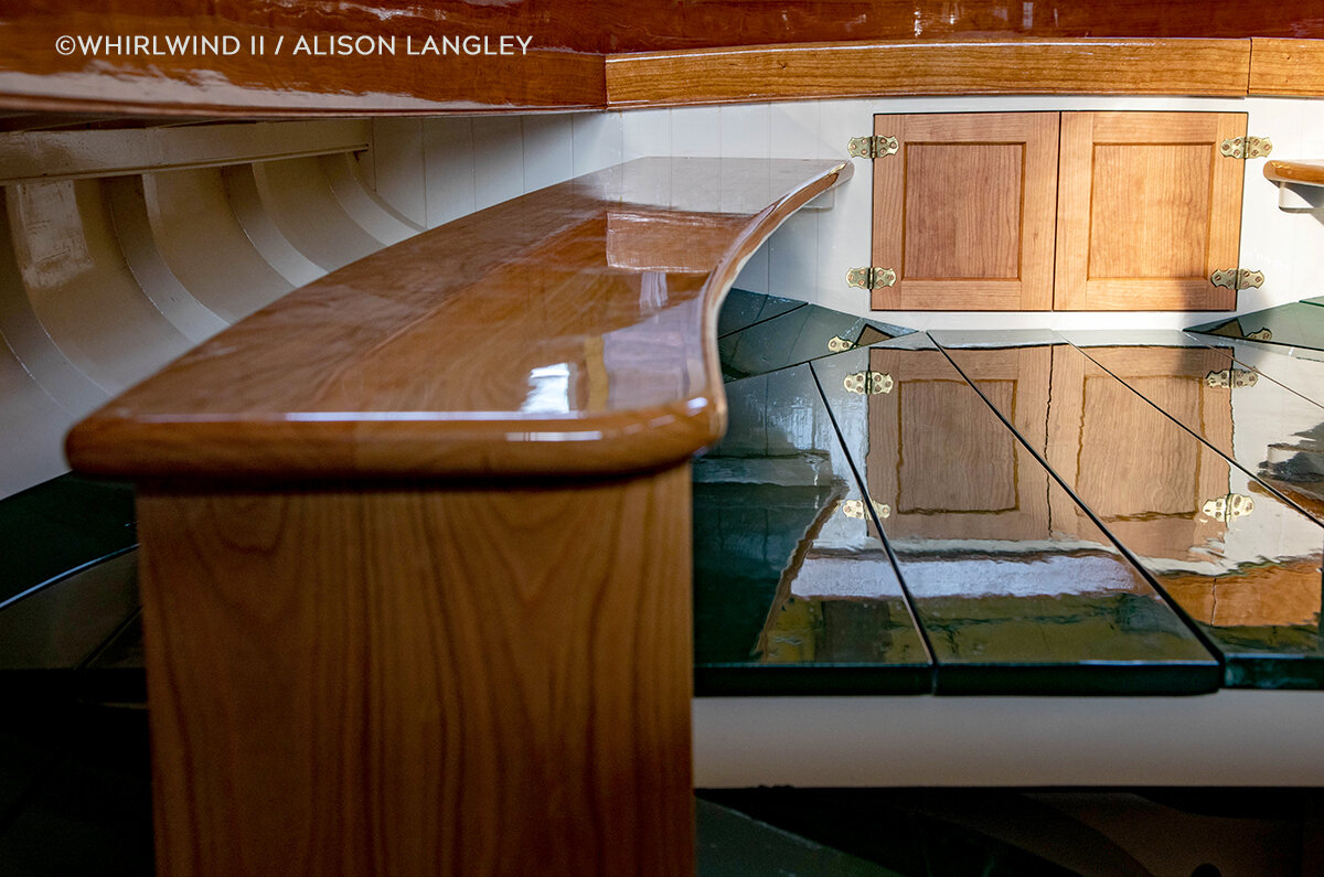 WHIRLWIND II is the brainchild of owner Yarrow Thorne, founder and director of The Avenue Concept in Providence RI. It has been an honor collaborating with Yarrow and the distinguished group of professionals he has assembled for design, engineering, and documentation. These include Captain Mary Ann Thorne, project manager Ezra Smith, naval architect Matthew Smith, photographer/filmmaker Alison Langley, writer Chris Museler, artist Russ Kramer, and cat boat advisor Tim Fallon. As they say, “it takes a village” and the Artisan Boatworks crew and I are grateful to be working with such an amazing support team.
