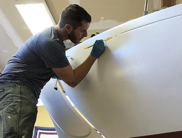 Our accomplished finishers are cycling two or three boats per week through our new paint/ varnish bay all winter long. We have availability in July and August if there are any painting or varnish projects we can do for you either here or off-site.