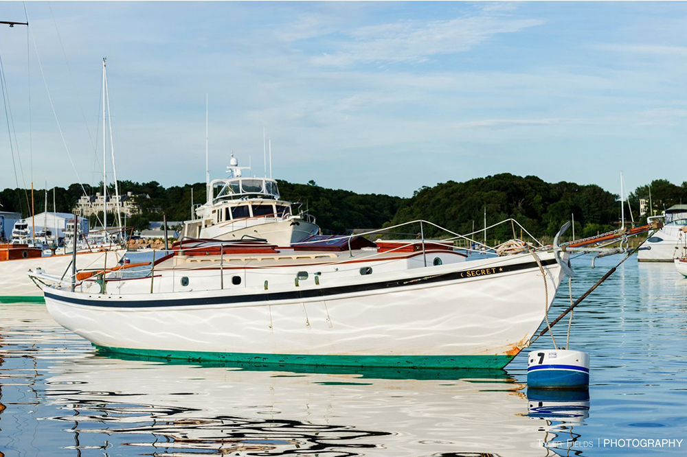 Also arriving in July was SECRET, a Concordia 31 sloop designed by W.B. Harris and Waldo Howland in 1938, and built by the Concordia Company in 1967. There was a fire aboard SECRET in 1988, resulting in new deck, cockpit, and trunk cabin. Her oak backbone timbers, however, were original and iron fastened. Although the wood appeared sound on the outside, iron sickness was extensive – particularly in the frame ends where floor timber bolts passed through.