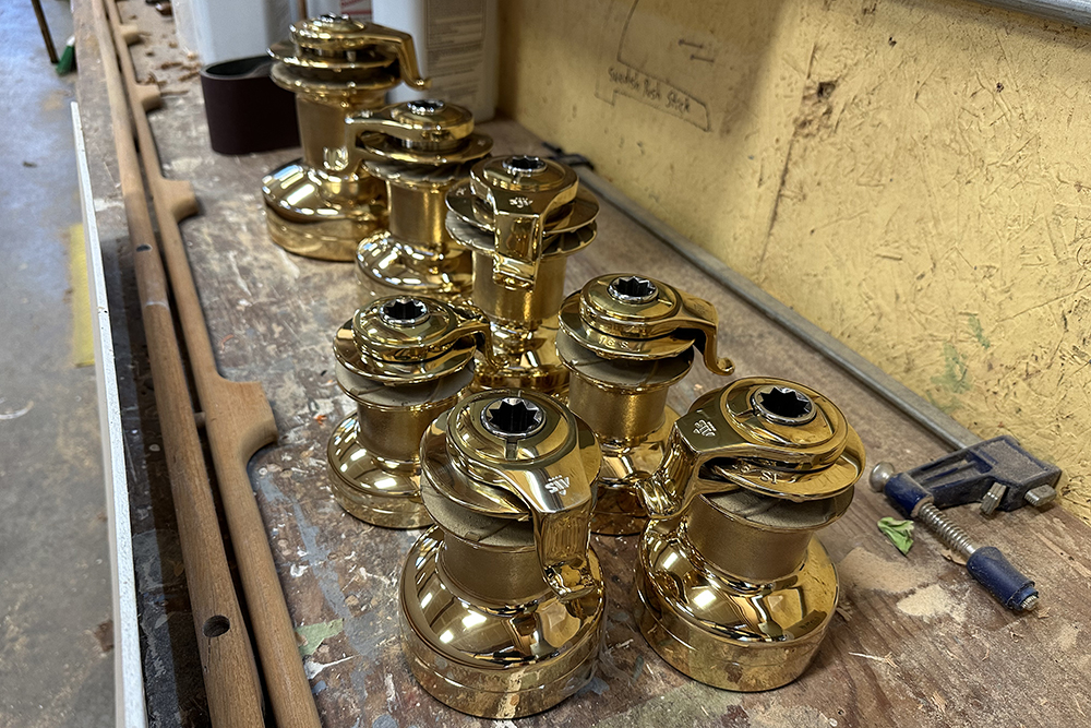 All nine of MELITA’s elliptical fixed portlights were replaced with opening rectangular ones from Spartan Marine, and eight new self-tailing bronze winches from Wilmex will adorn their original pedestals. This winter, Alex will be replacing her engine with a new 38 hp Beta diesel. Her sternpost will also be replaced, the ballast keel and deadwood re-bedded, and the brightwork completely stripped and refinished. The standing and running rigging will be entirely replaced, and a new suit of Sperry Sails will be bent on in the spring.